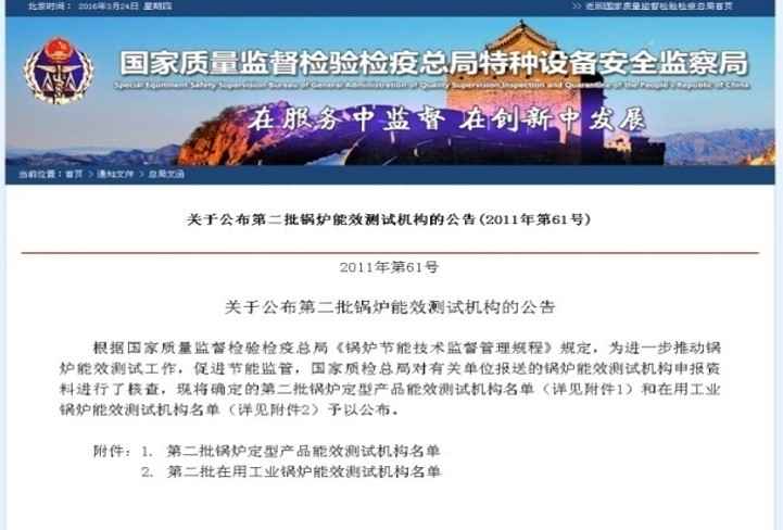 2010年取得了国家技术监督总局第二批认可的在用工业锅炉能效测试机构。
