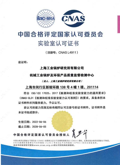 2011年取得了中国合格评定国家认可委员会实验室认可证书[证书编号:CNAS L4911]。